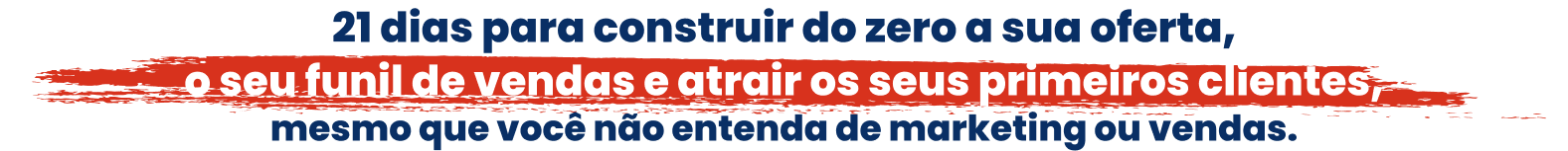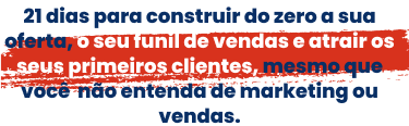 Ao longo destes 21 dias, iremos preparar a sua mente para o sucesso, construir a escada de sucesso do seu negócio, criar ofertas irresistíveis, criar os seus Funis de Venda e Atração de clientes e também, criar estratégias de atração de clientes para o seu negócio em piloto automático.